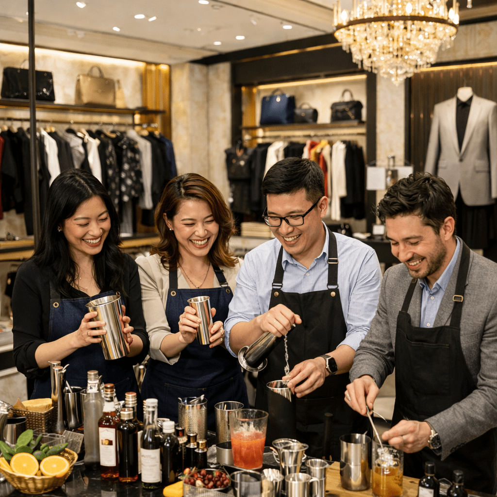 Clients craft drinks under expert guidance, learning balance and flavor harmony – hands-on fun that stands out from traditional tastings. Perfect for creative industries, tech firms, or international clients appreciating East-West fusion.