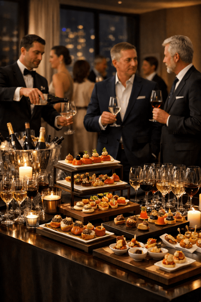 - Theme-Based: French classics with Provençal canapés; Italian varietals with antipasti; premium sake with umami-driven bites.